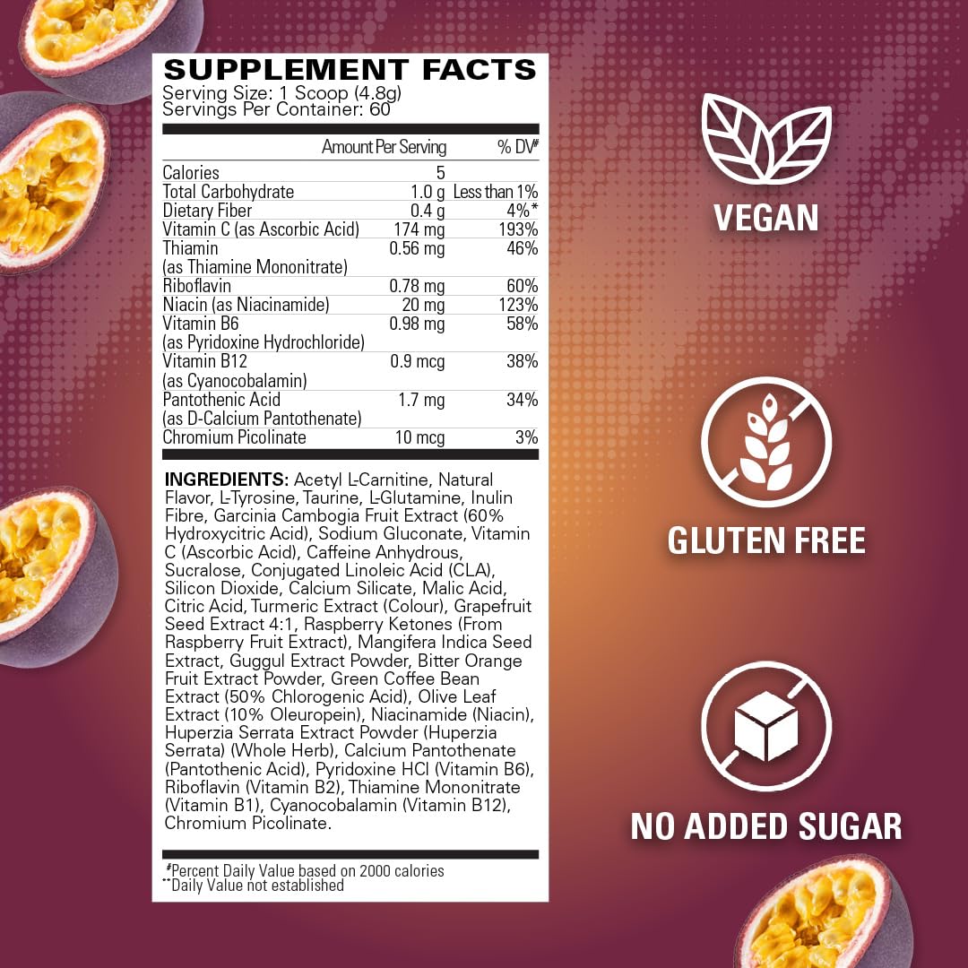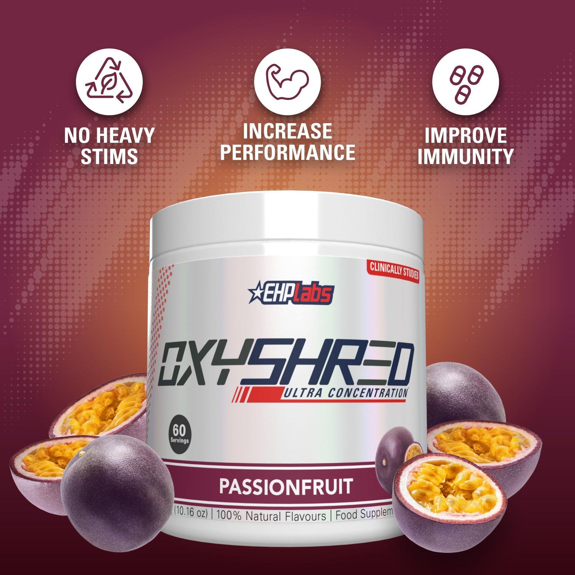 EHP Labs OxyShred Pre Workout Powder & Shredding Supplement - Preworkout Powder with L Glutamine & Acetyl L Carnitine, Energy Boost Drink - Passionfruit, 60 Servings